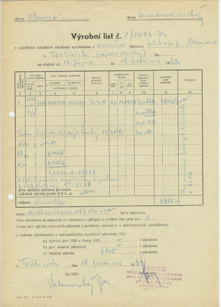 Archiv TŌSH Distillery ukrývá i vůbec nejstarší Výrobní list, jenž se vztahuje k první československé whisky. Nese číslo jedna, jde o záznam množství alkoholu vyprodukovaného od 17. října do 18. prosince 1973. Dozvídáme se, že v první várce nejstarší tuzemské whisky vzniklo 2 815 litrů alkoholu.